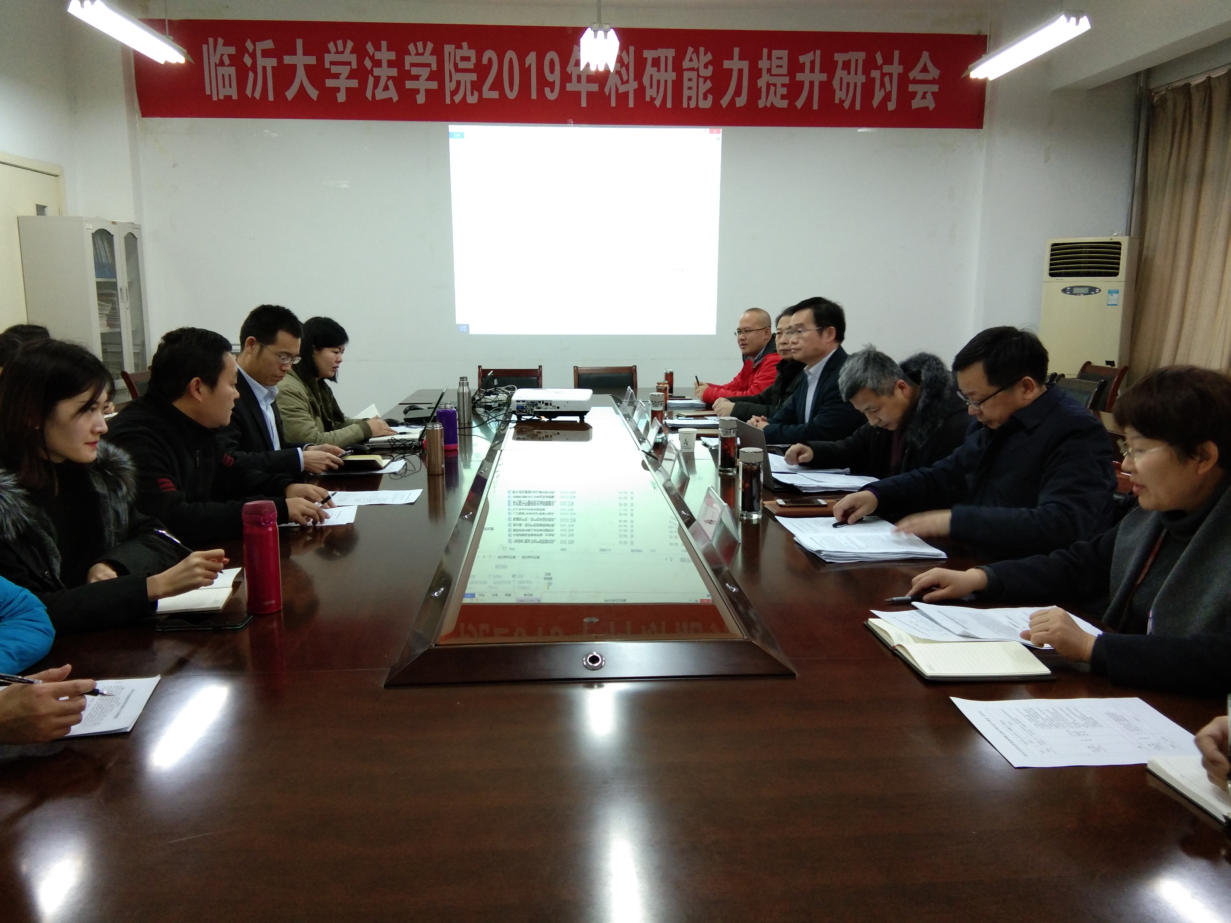 2019年1月19日,法学院科研能力提升研讨会(2019)隆重举行。《法学论坛》主编吴岩主任、河南大学法学院院长蔡军教授、《苏州大学学报》主编康敬奎主任、《江汉论坛》编辑部主任李涛等出席并组成专家组,临沂大学党委委员、副校长池福安教授出席并致辞,会议由法学院院长姚建涛教授主持。法学院领导班子成员、全体教师参加了本次研讨会。