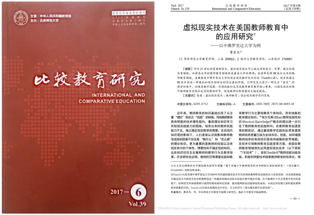 成果简介:作为 21 世纪的重要新技术,虚拟现实技术早已被运用到医疗、军事、航空和游戏等领域,而将其运用到教师教育领域则是最近几年的事情。美国率先将 VR 技术运用到教师教育领域,其典型是中佛罗里达大学的混合现实教学实训系统(TeachlivE)。该系统通过VR 技术创设一种虚拟和现实相结合的混合虚拟环境,让师范生沉浸于一种完全“真实”的课堂环境中,训练其教学技能、管理技能和反思技能等教育教学核心素养,以强化现实环境中教师教育实践和反思的薄弱环节,促进教师培养质量的大幅度提高。