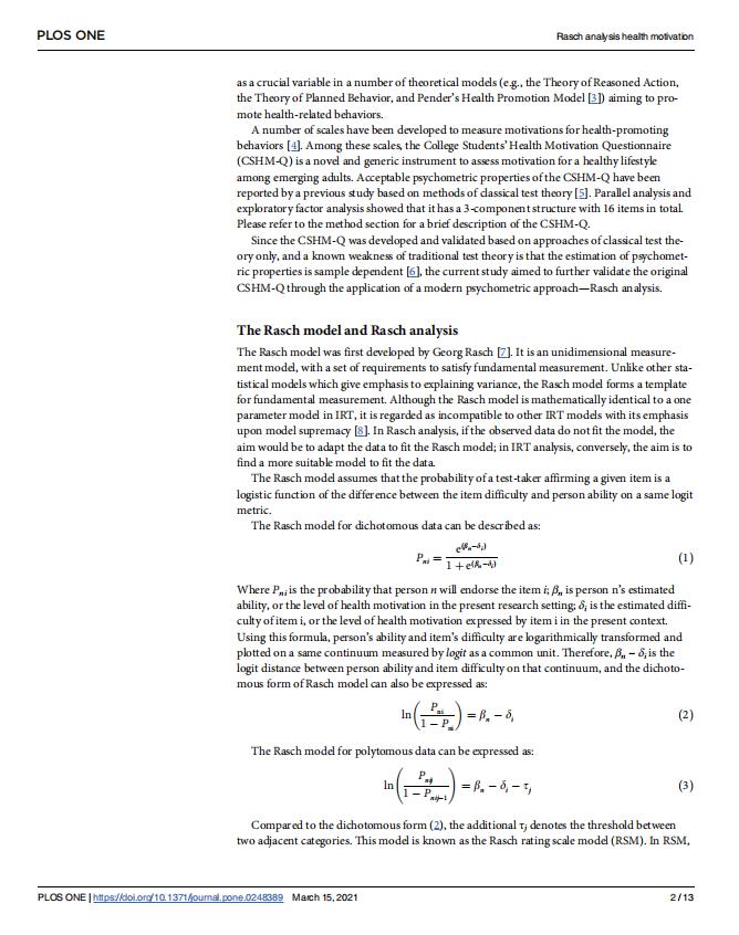 A Rasch Analysis of Emerging Adults’ Health Motivation Questionnaire in Higher Education Context
