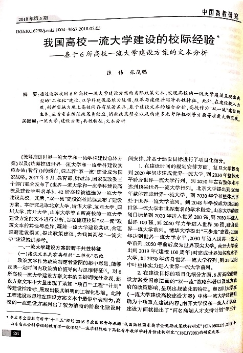 我国高校一流大学建设的校际经验:基于6所高校一流大学建设方案的文本分析