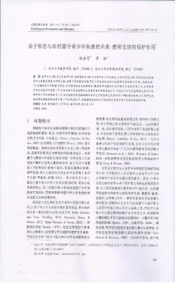 亲子依恋与农村留守青少年焦虑的关系:教师支持的保护作用