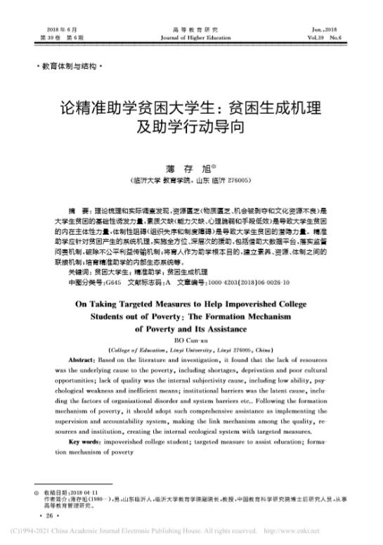 论精准助学贫困大学生:贫困生成机理及助学行动导向