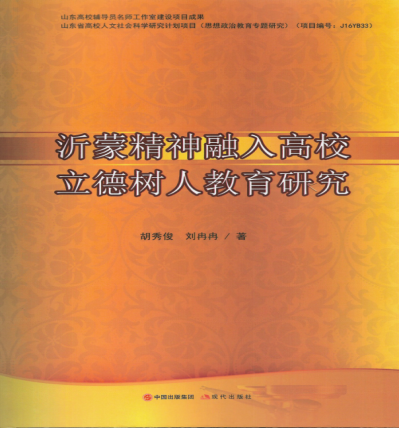 成果简介:发源于沂蒙大地的沂蒙精神与井冈山精神、延安精神、西柏坡精神一样,同属于共产主义的思想体系,是中华民族精神的重要组成部分,具备鲜明的时代特色和丰富内涵,是高校思想政治工作的优质资源和力量源泉。本书首先阐释了沂蒙精神的内涵和时代价值以及弘扬沂蒙精神的意义,剖析了当代大学生思想政治教育的现状及问题、沂蒙精神融入大学生思想政治教育的必要性,接着论述了沂蒙精神与大学生社会主义核心价值观的培育。最后,以临沂大学为例,重点论述了沂蒙精神育人的实践、育人机制的构建、育人的实践成效以及沂蒙精神育人展望。通过引入临沂大学沂蒙精神育人的实践案例,充分证明了兼具情感震撼力与思想穿透力的沂蒙精神,对于高校思想政治教育工作所产生的巨大作用和价值观意义。