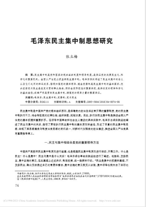 成果简介:民主集中制是党和国家的根本组织制度和领导制度,是保证党的决策民主化、科学化的重要机制。全面从严治党必须坚持民主集中制。毛泽东深刻阐述了民主与集中的含义以及它们之间的辩证关系,强调加强党的集体领导、健全党委制是民主集中制的基本要求;充分发扬党内民主是在党内贯彻群众路线、调动全党积极性的重要体现,是保证党的领导科学化的基本途径;纪律严明是贯彻民主集中制、增强党的领导力量的重要保证