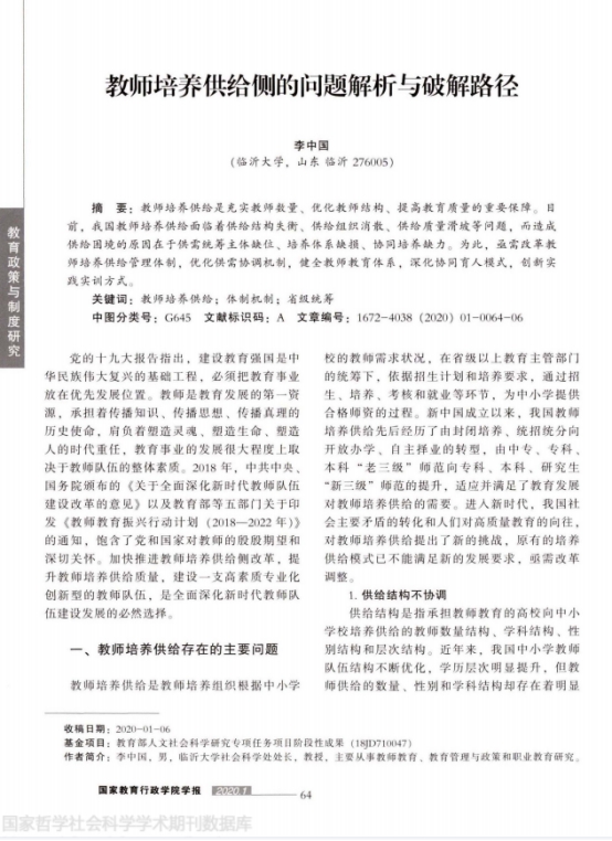 成果简介:教师培养供给是充实教师数量、优化教师结构、提高教育质量的重要保障。目前,我国教师培养供给面临着供给结构失衡、供给组织消散、供给质量滑坡等问题,而造成供给困境的原因在于供需统筹主体缺位、培养体系缺损、协同培养缺力。为此,亟需改革教师培养供给管理体制,优化供需协调机制,健全教师教育体系,深化协同育人模式,创新实践实训方式。