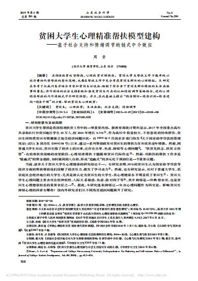 贫困大学生心理精准帮扶模型建构—基于社会支持和情绪调节的链式中介效应