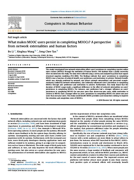What makes MOOC users persist in completing MOOCs? A perspective from network externalities and human factors