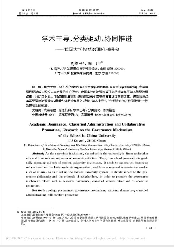 学术主导、分类驱动、协同推进——我国大学院系治理机制探索