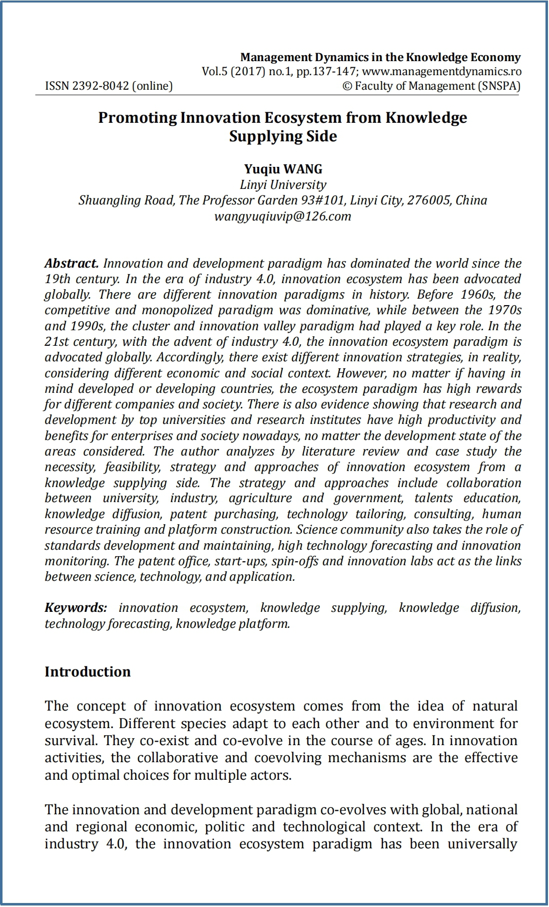 (Wang Yuqiu. Management Dynamics in the Knowledge Economy,2017.3)